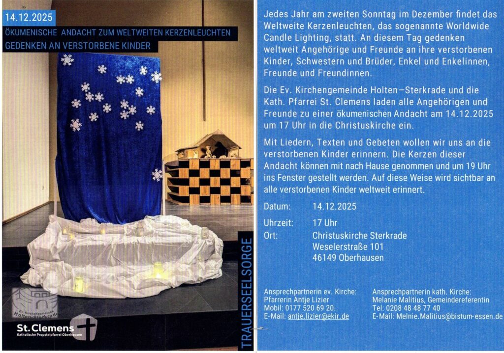 17.00 Uhr: Ök. Gottesdienst: Weltweites Kerzenleuchten im Gedenken der verstorbenen Kinder